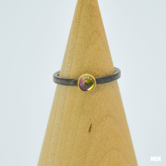 14k solid yellow gold and sterling silver watermelon tourmaline size 8