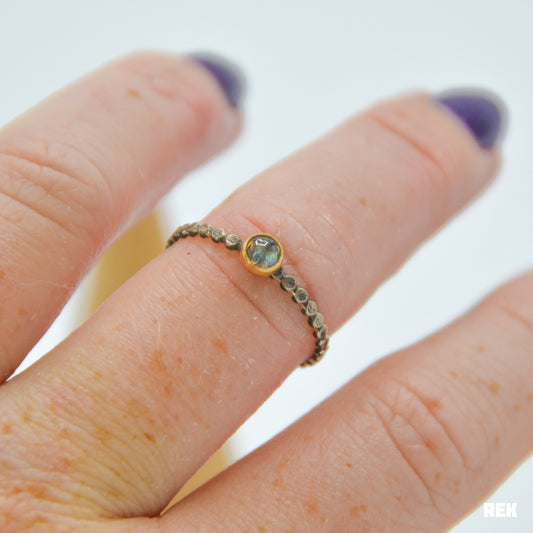 14k solid yellow gold and sterling silver 2mm Apatite size 7.5