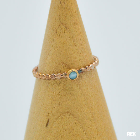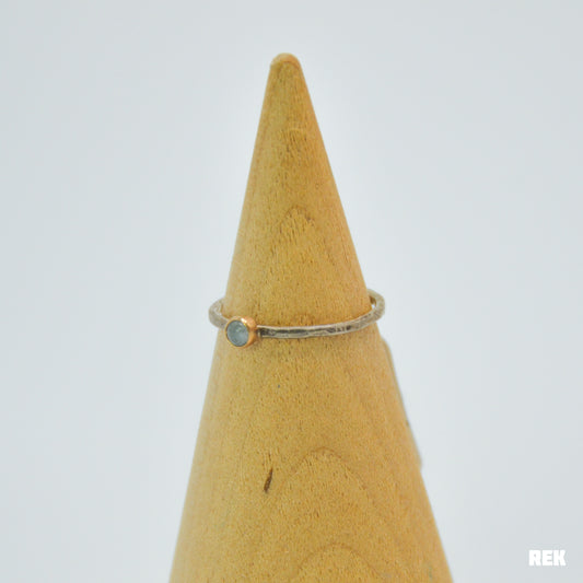 14k solid yellow gold and sterling silver 3mm aquamarine size 6.5