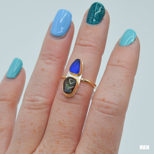 Gold fill double Australian opal and watermelon tourmaline size 8