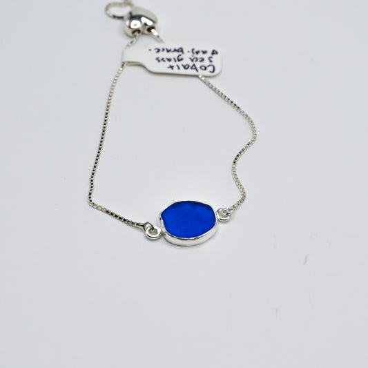 Adjustable cobalt sea glass bracelet