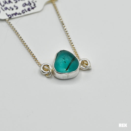 Adjustable bracelet with bright aqua safety sea glass