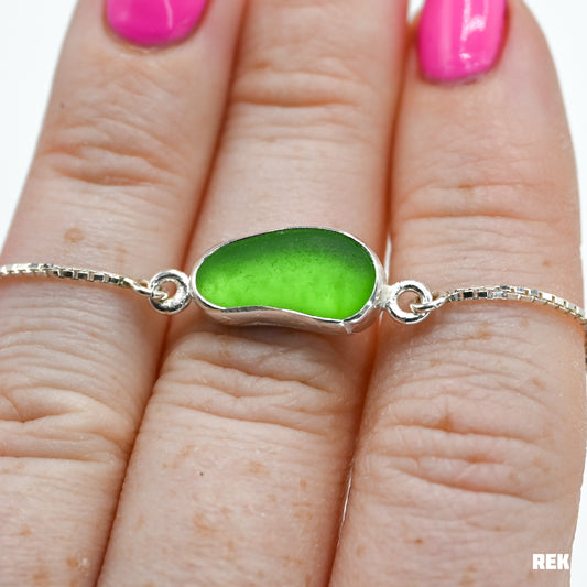 Adjustable green sea glass bracelet