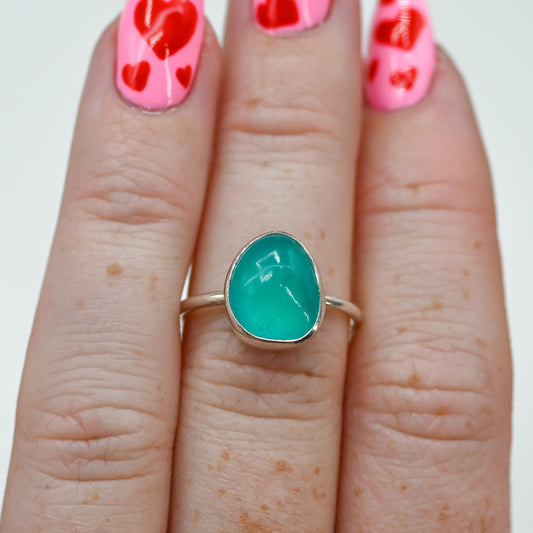 Aqua sea glass and silver succulent size 7
