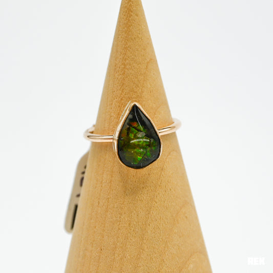 Gold fill adjustable Mexican fire opal and silver mushroom size 7