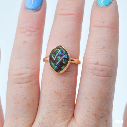 Gold Fill Aqua Bonfire Sea Glass Size 7