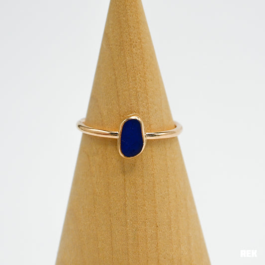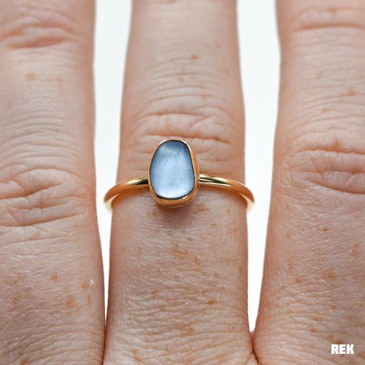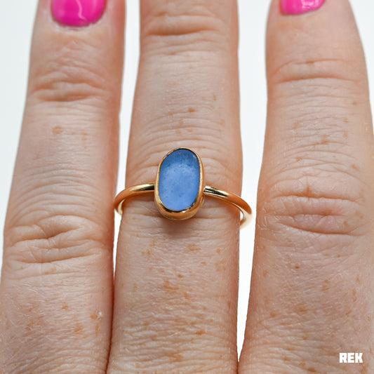 Gold Fill Cornflower Sea Glass Ring Size 8