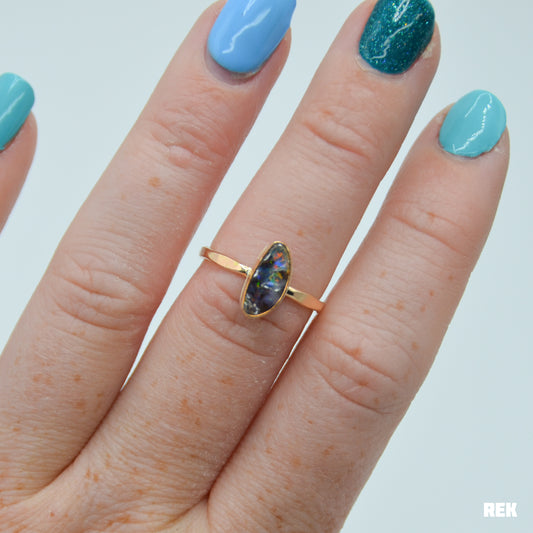 Gold fill double cobalt sea glass and ammolite size 6.25