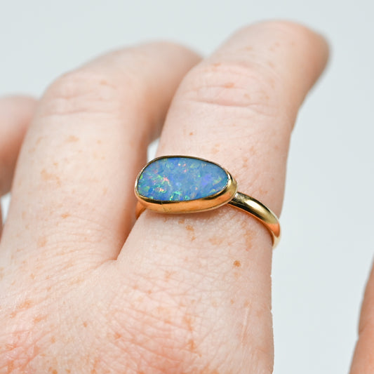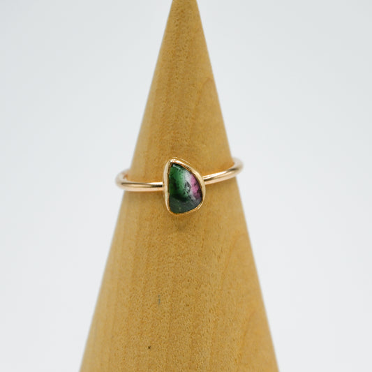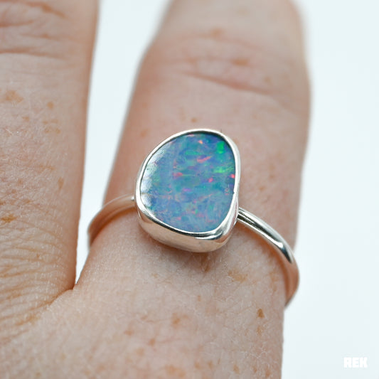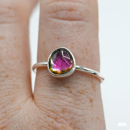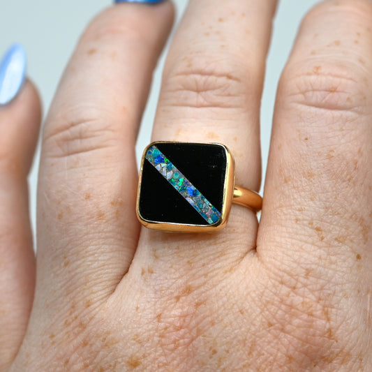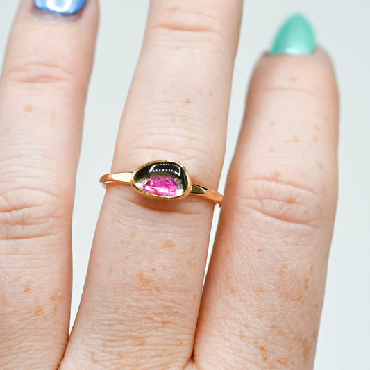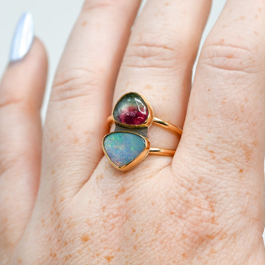 Gold fill double Australian opal and watermelon tourmaline size 8