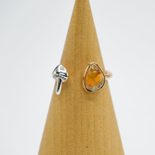 Gold fill adjustable Mexican fire opal and silver mushroom size 7