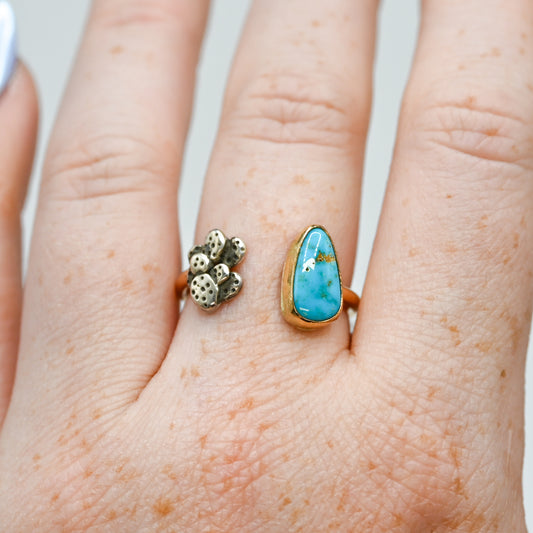 Gold fill adjustable kingman turquoise and silver cactus size 8