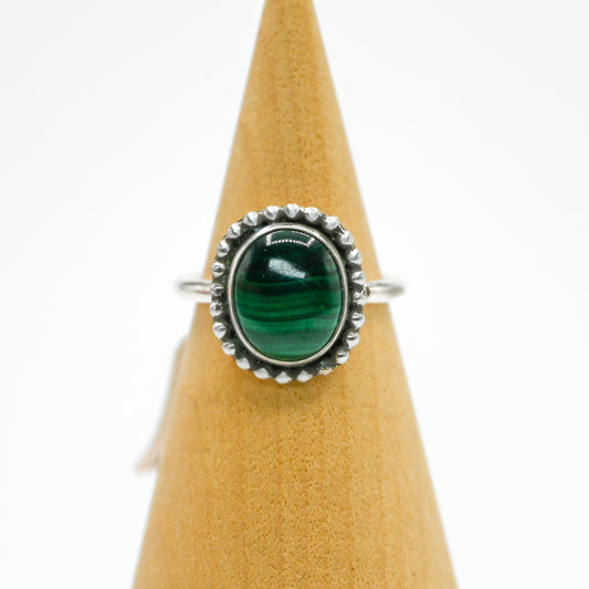 Oval malachite bead wire around size 6.25