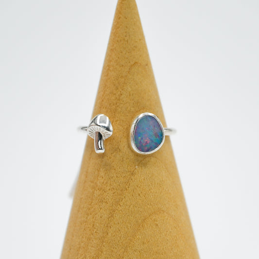 Adjustable mushroom and Australian opal size 6.75