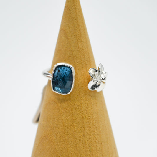 Adjustable teal moss kyanite and plumeria size 7