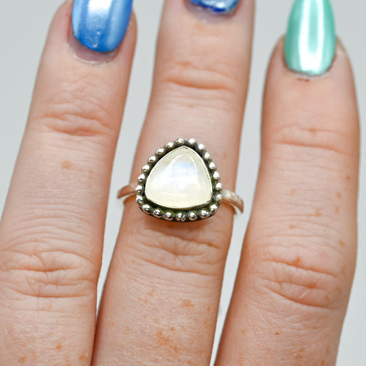 Trillion moonstone with bead wire around size 6.5