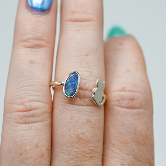 Adjustable Australian opal and cat size 7