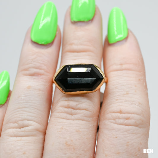 Gold fill xl rose cut hexagon horizontal onyx size 7.25