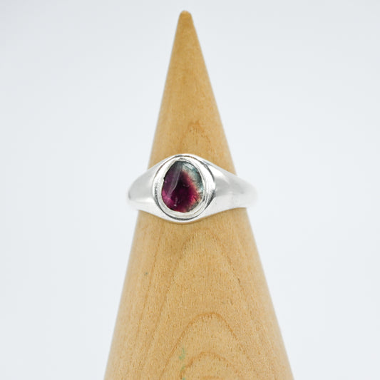 Sterling silver signet with watermelon tourmaline slice size 7