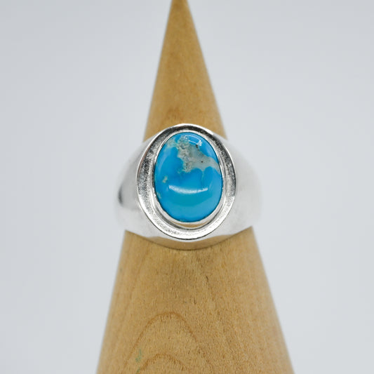 Chunky sterling silver signet and large kingman turquoise size 9