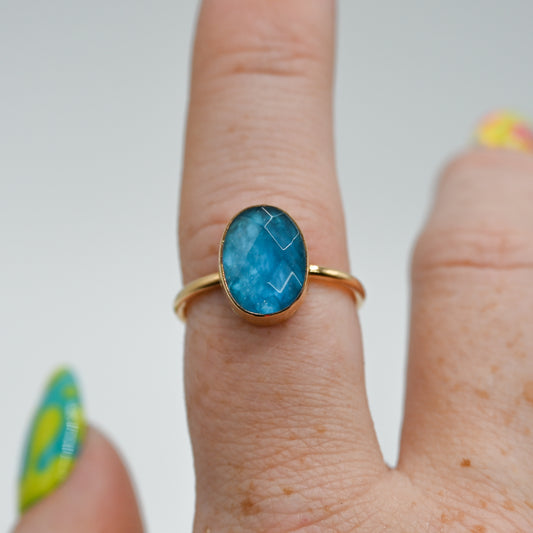 Gold fill oval rose cut neon blue apatite size 8