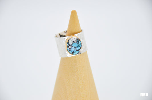 Chunky Sterling Silver Band and Gold Fill Pilot Mountain Turquoise and White Buffalo Size 8.5
