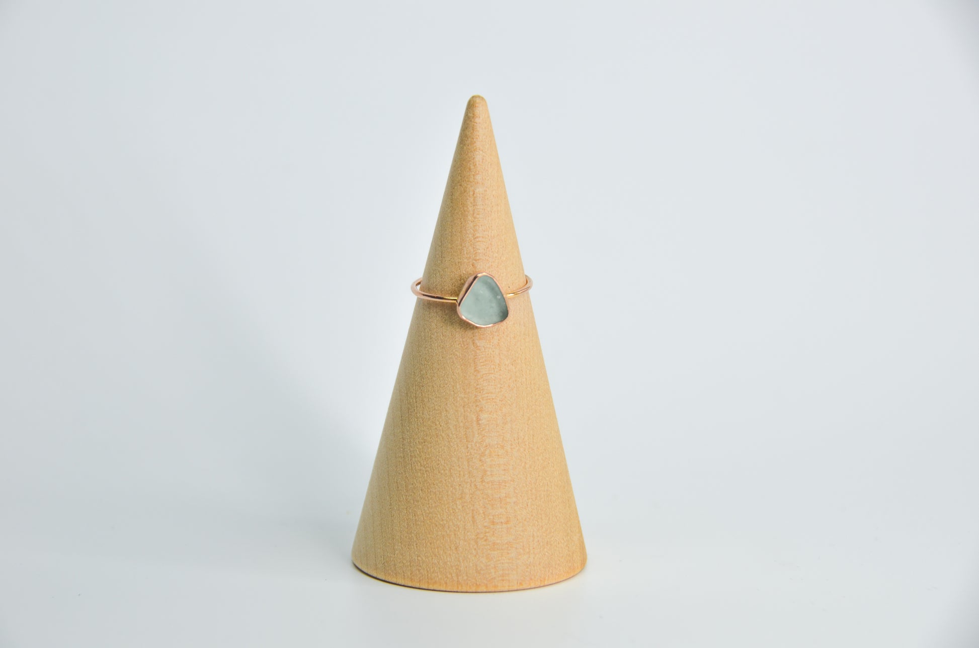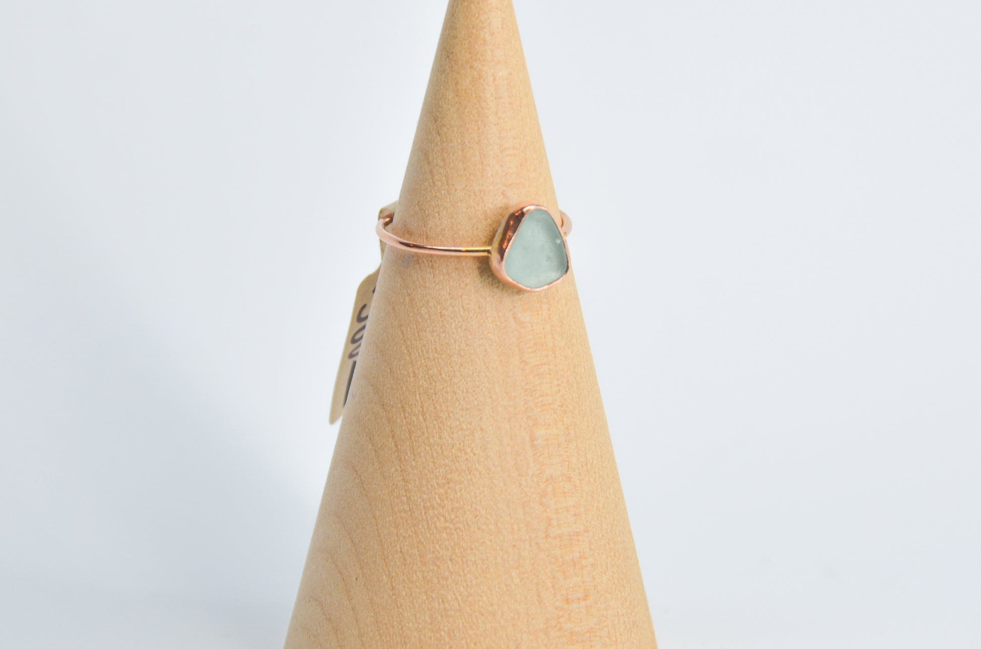I find all the sea glass myself on the coast of California! A piece of aqua sea glass set in solid 14 karat rose gold. Size 7.5