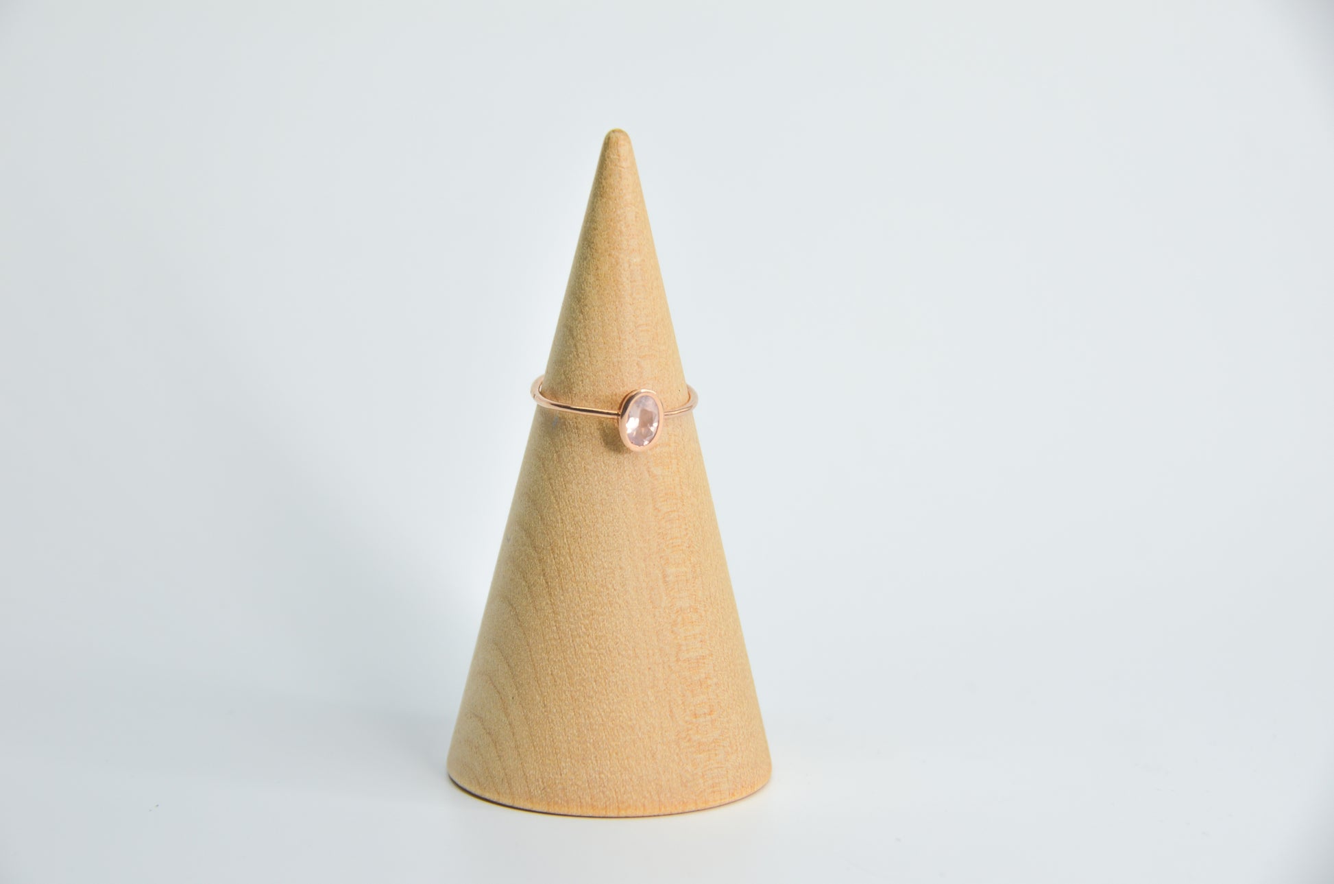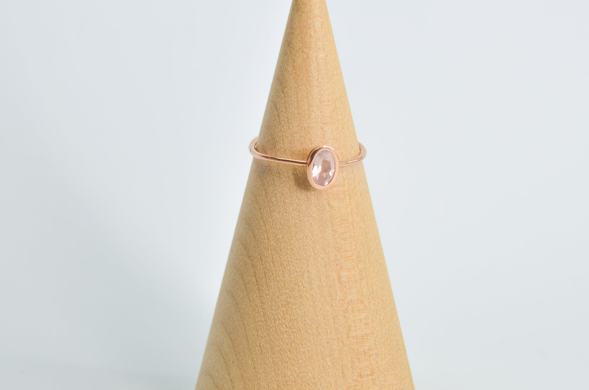 Oval faceted Rose Quartz size 8, set in solid 14 karat rose gold.