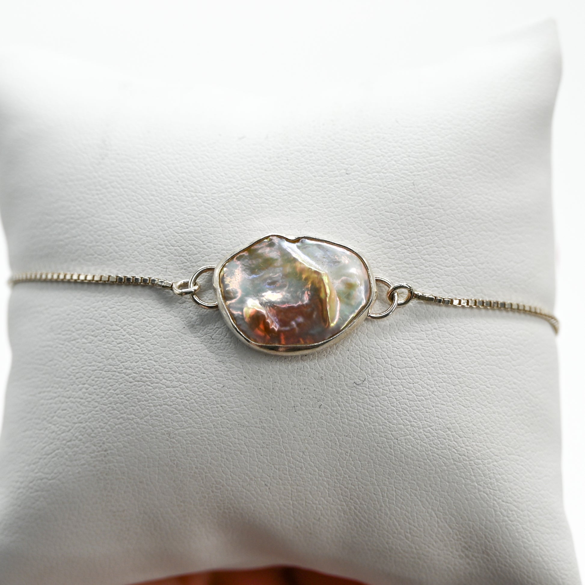 Cutie keshi pearl on an adjustable bracelet!