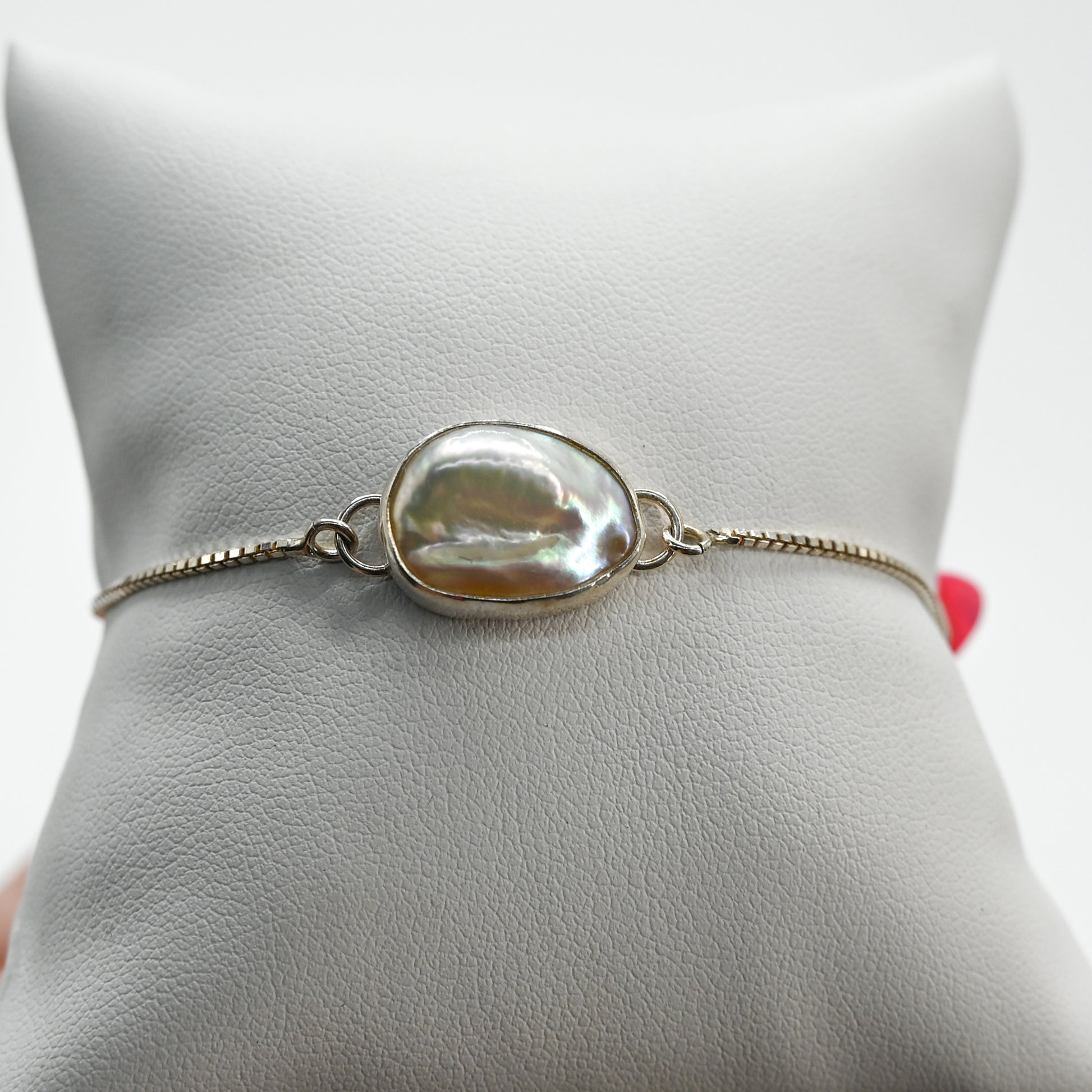 Cutie keshi pearl on an adjustable bracelet!