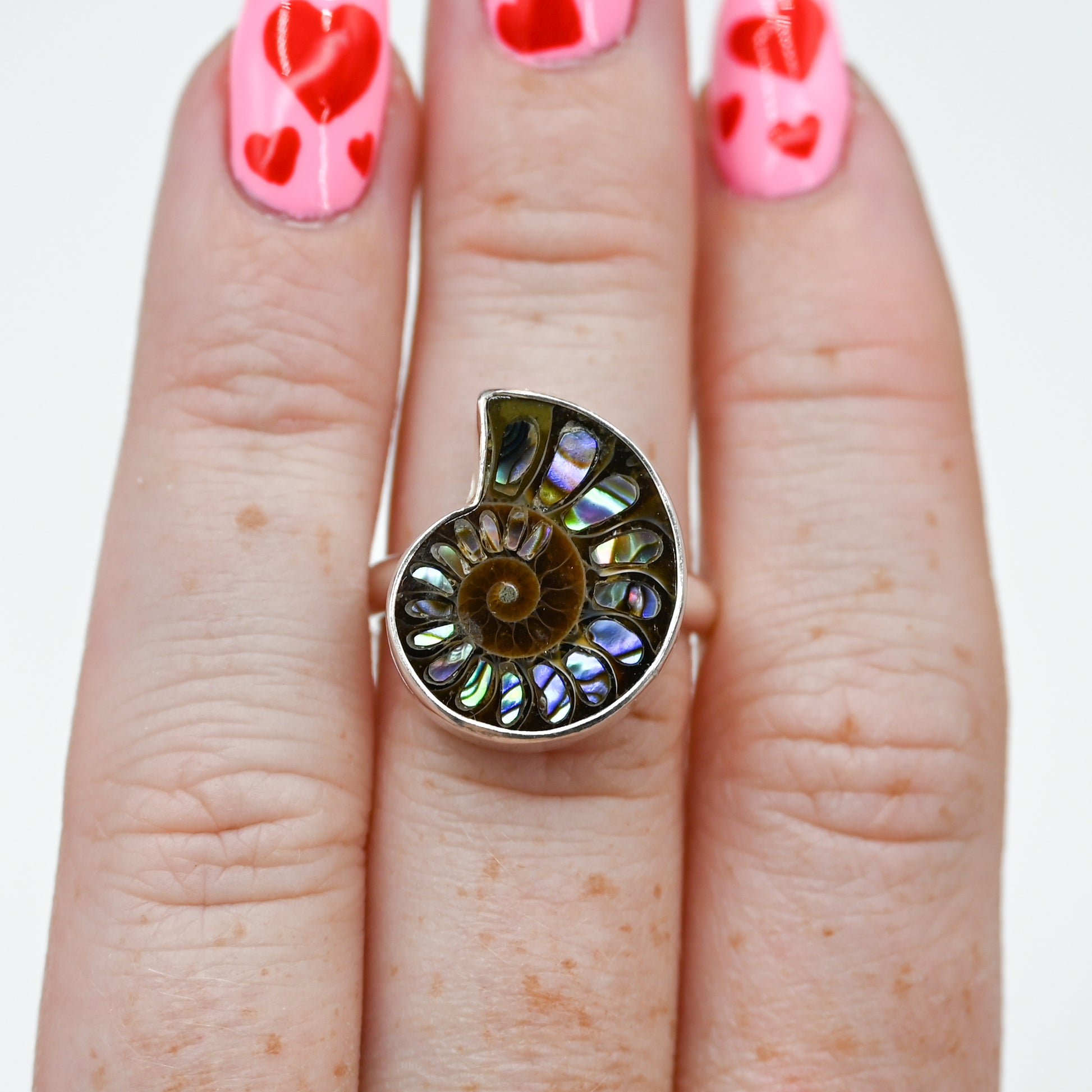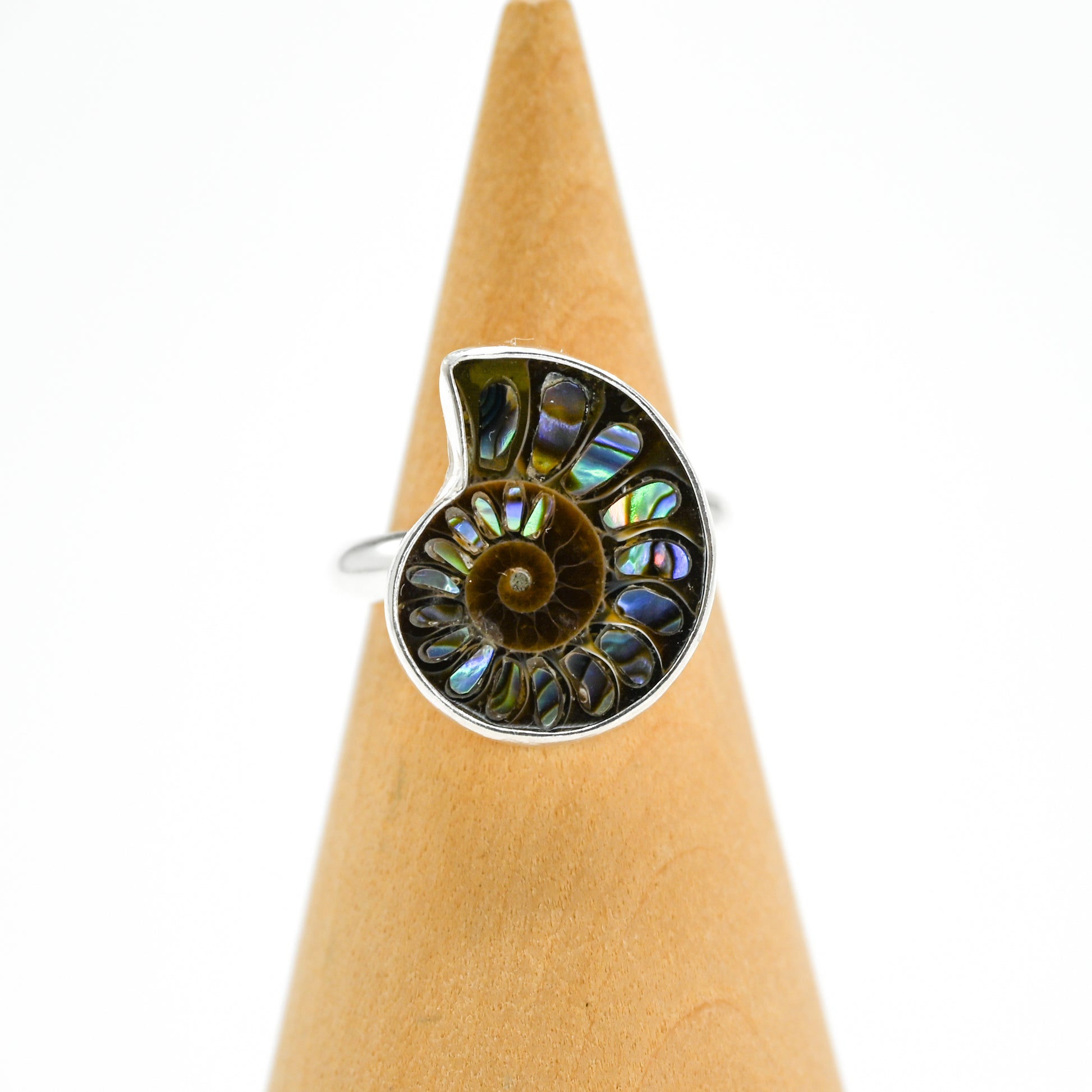 Ammonite with abalone inlay size 7