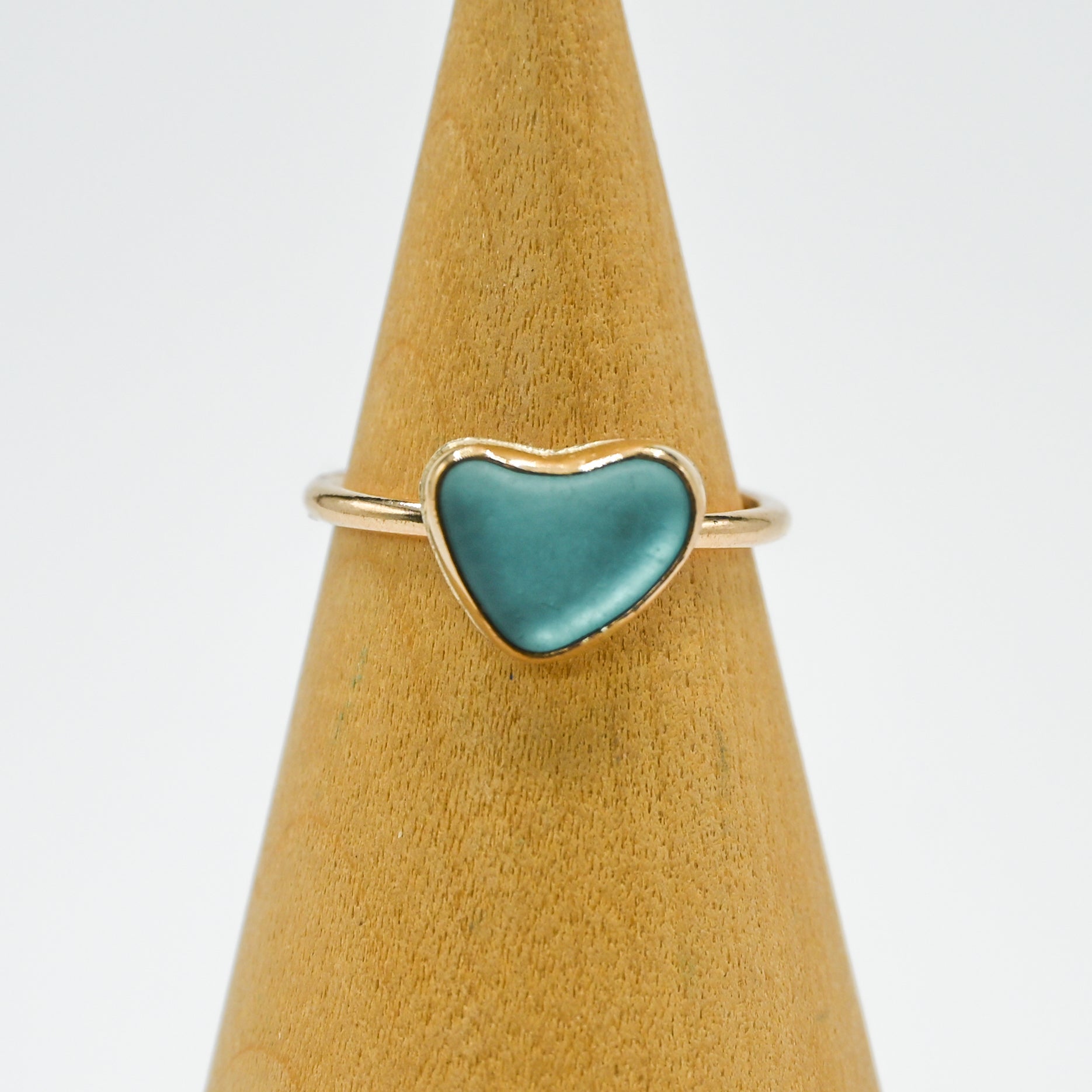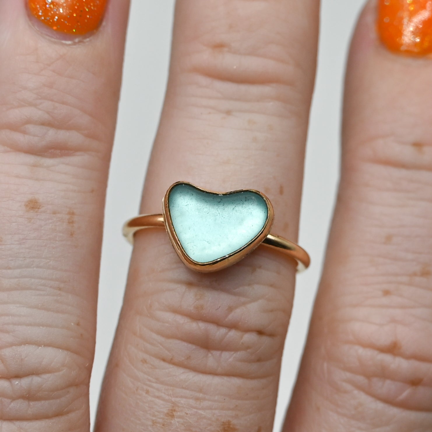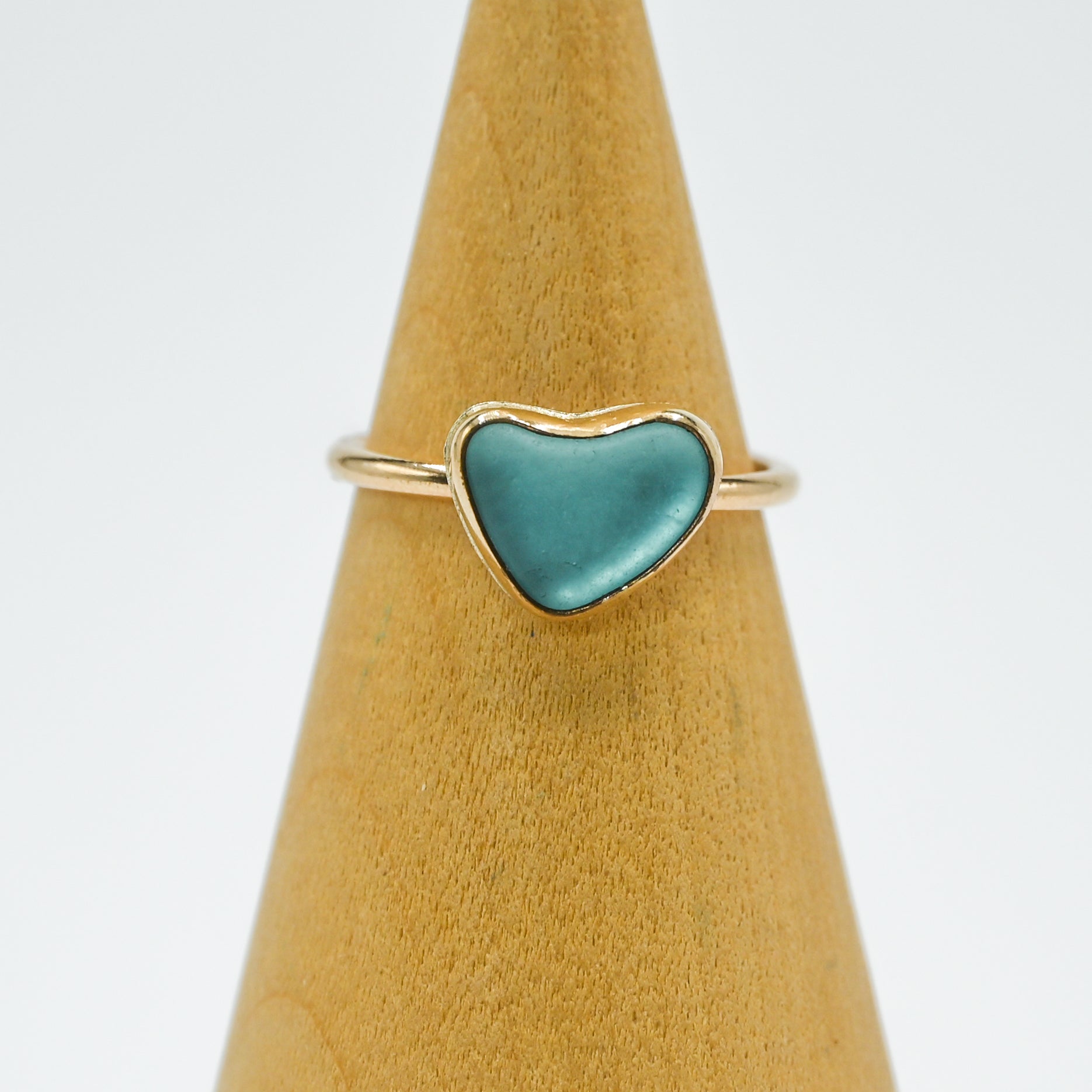 I find all my sea glass in the central coast of California. Sea glass set in 14k yellow gold fill.