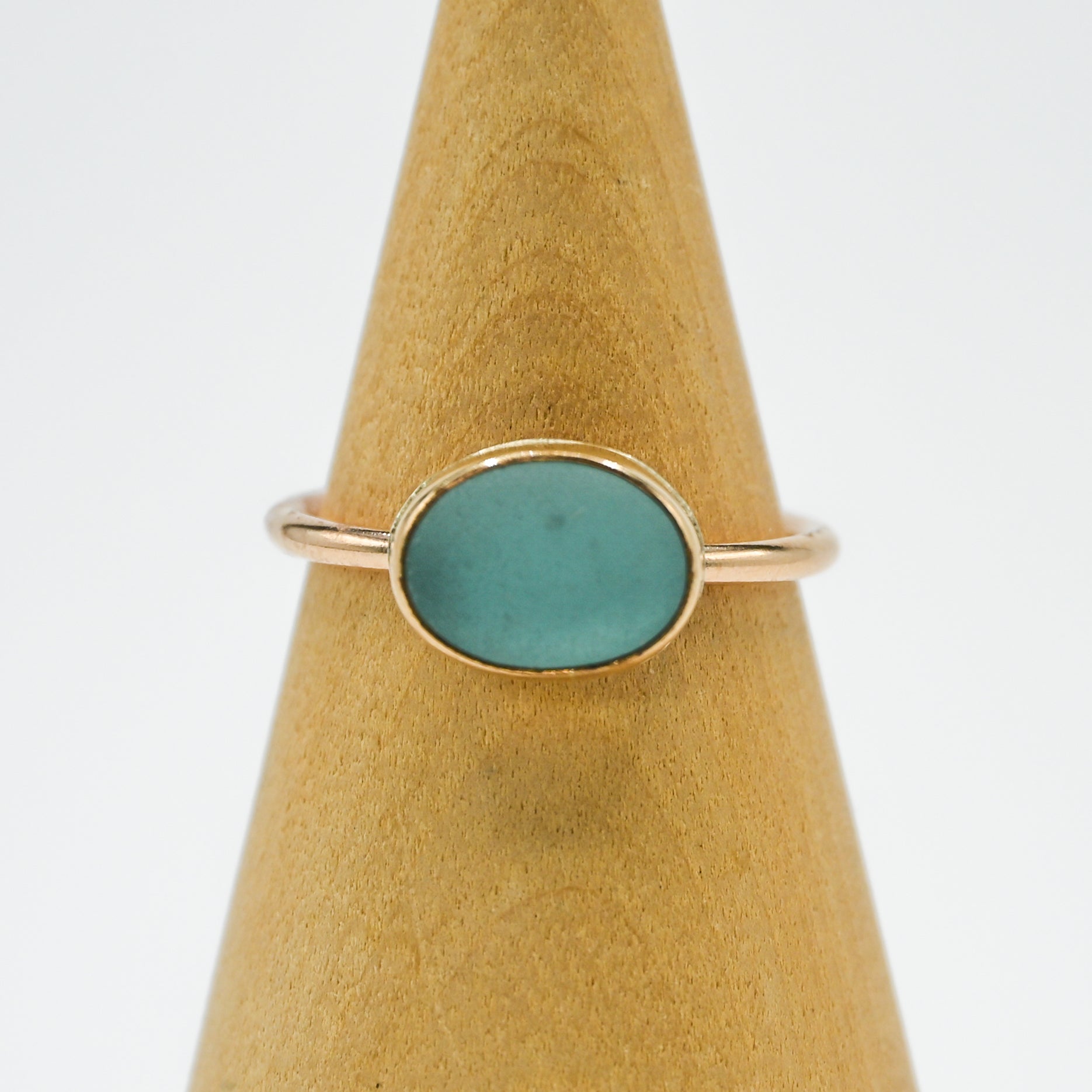 I find all my sea glass in the central coast of California. Sea glass set in 14k yellow gold fill.