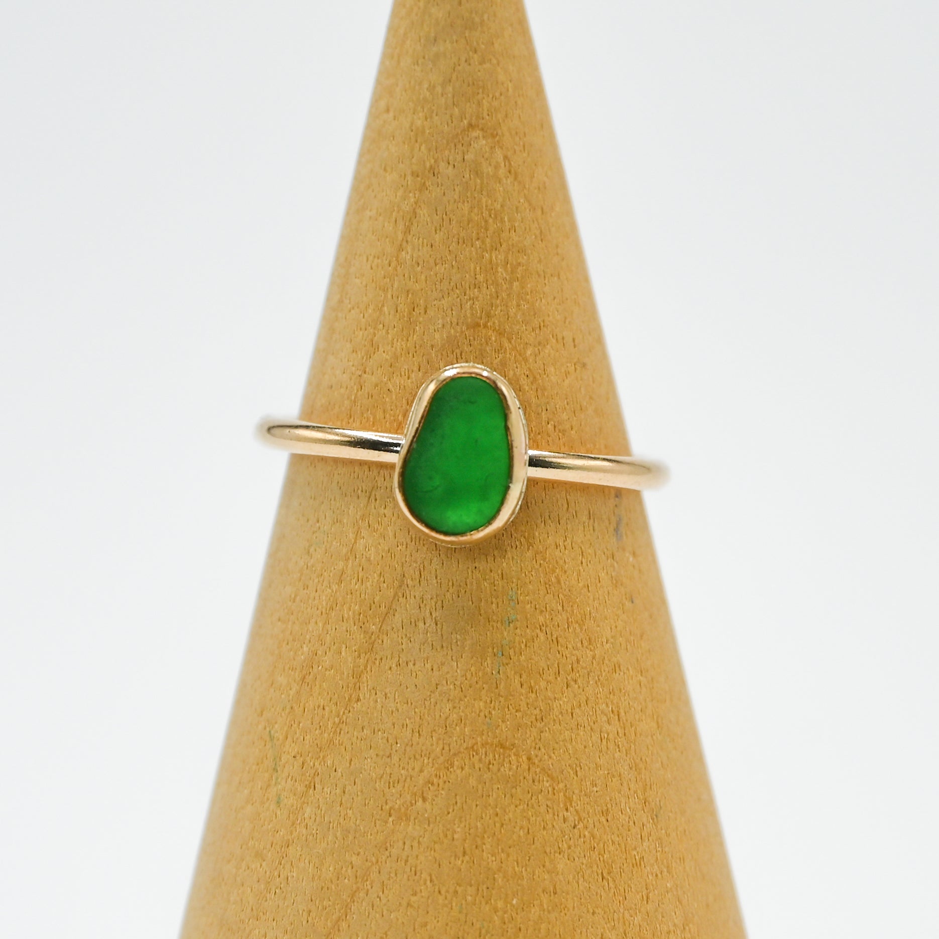 I find all my sea glass in the central coast of California. Sea glass set in 14k yellow gold fill.