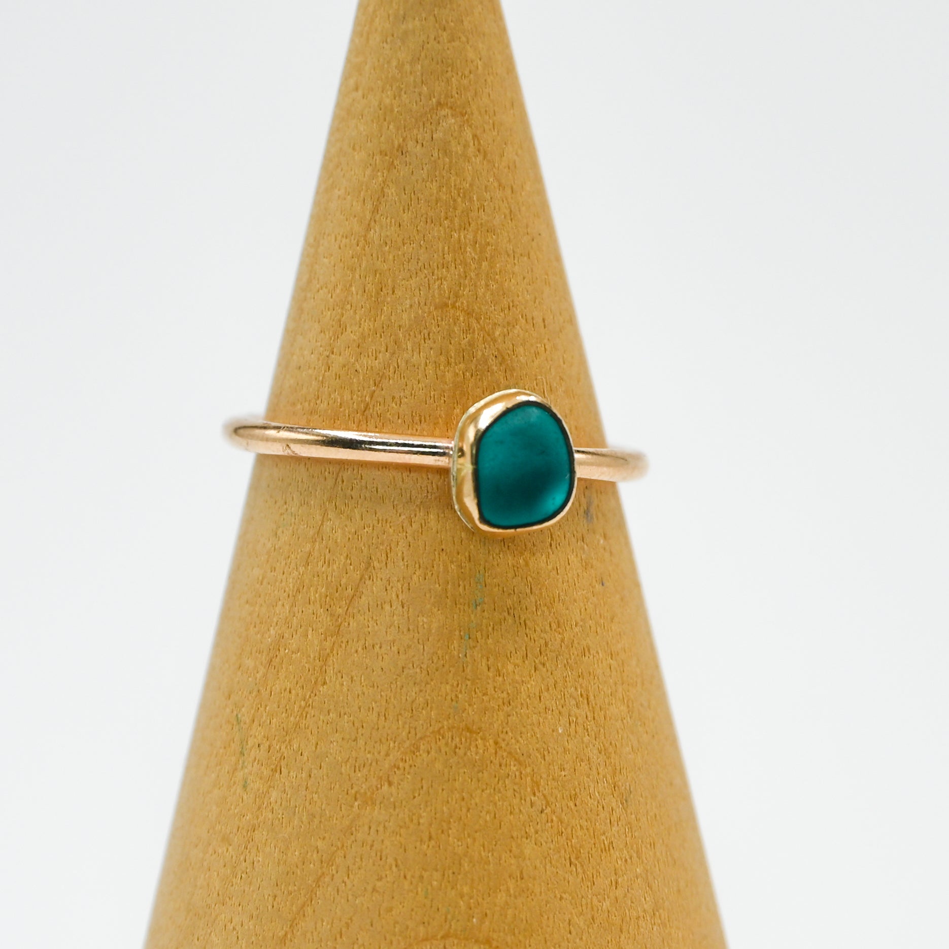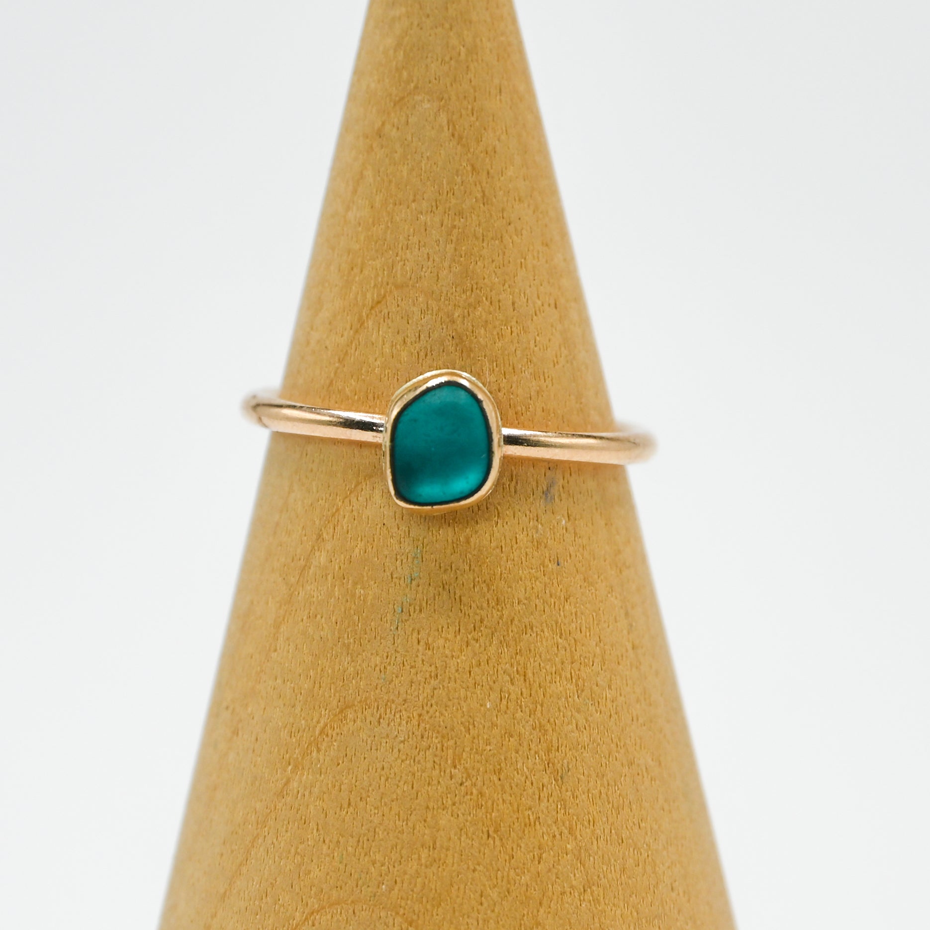 I find all my sea glass in the central coast of California. Sea glass set in 14k yellow gold fill.