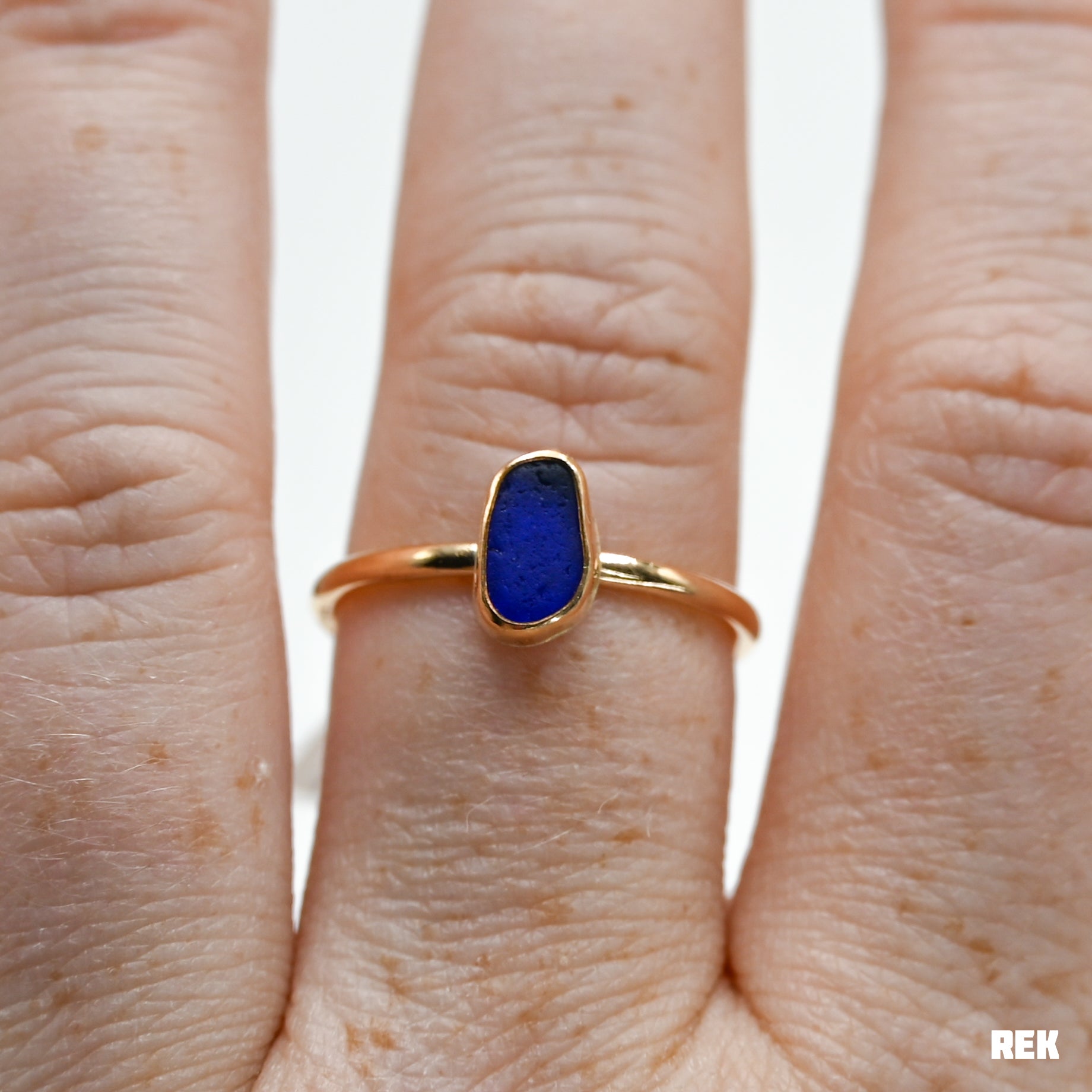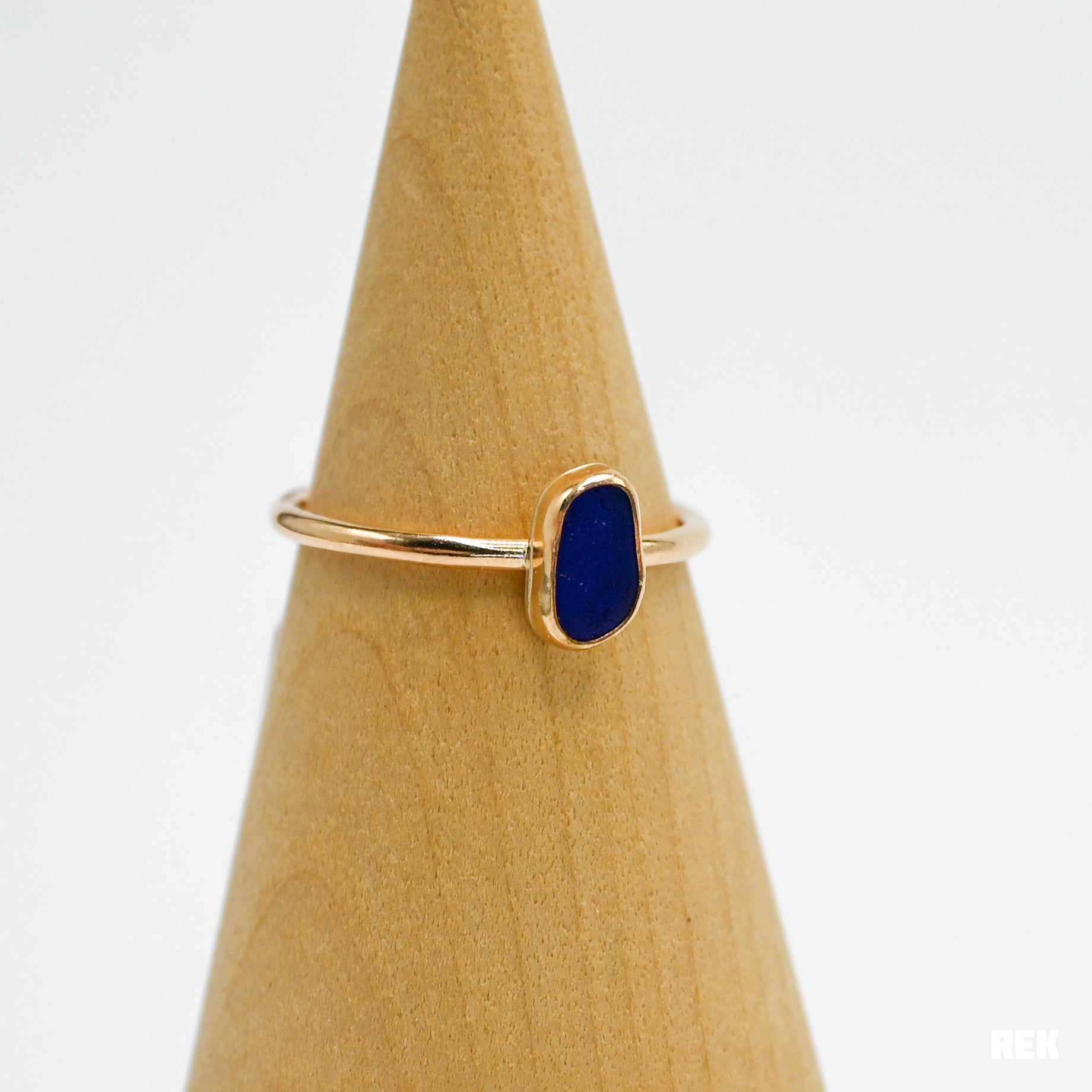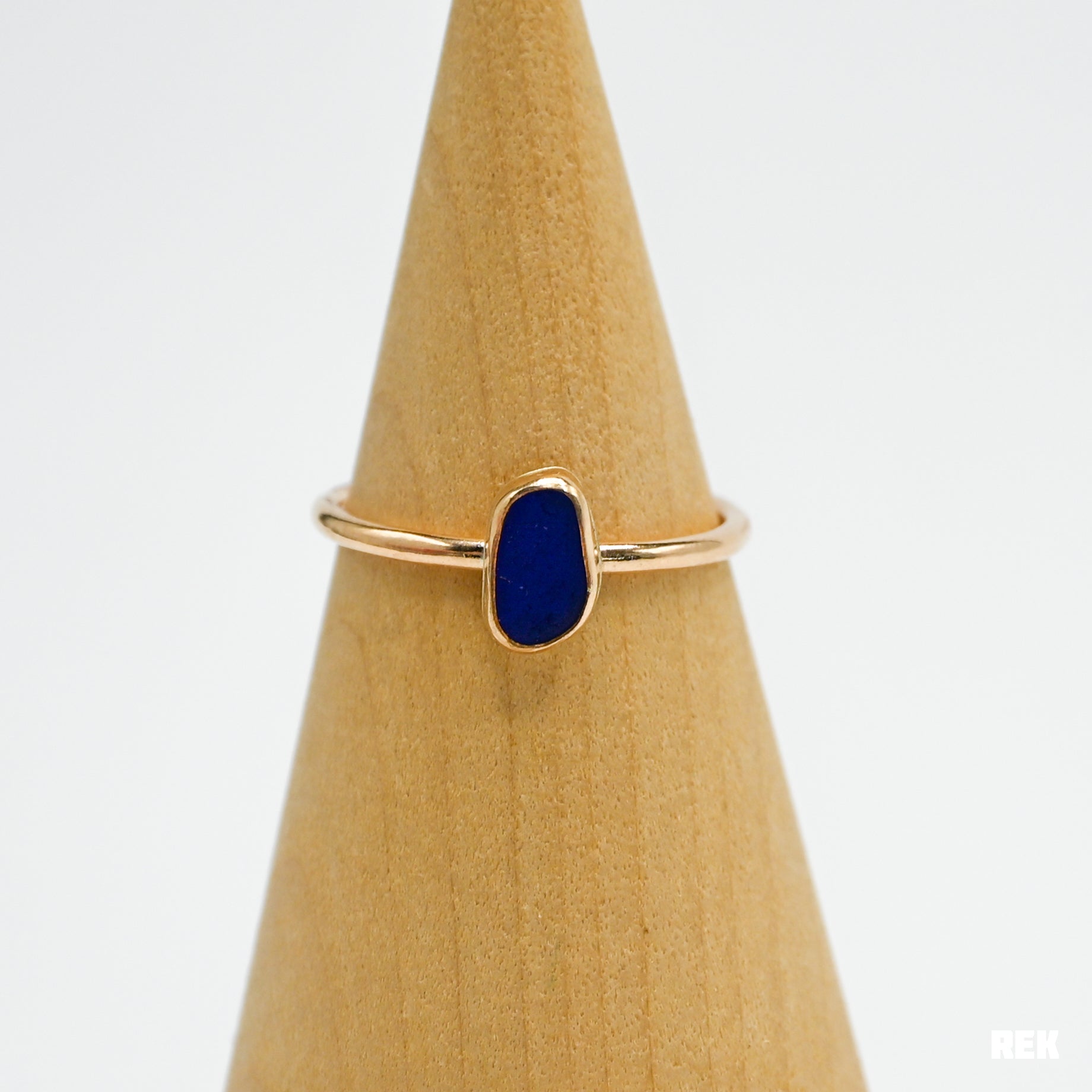 Gold fill cobalt sea glass size 9