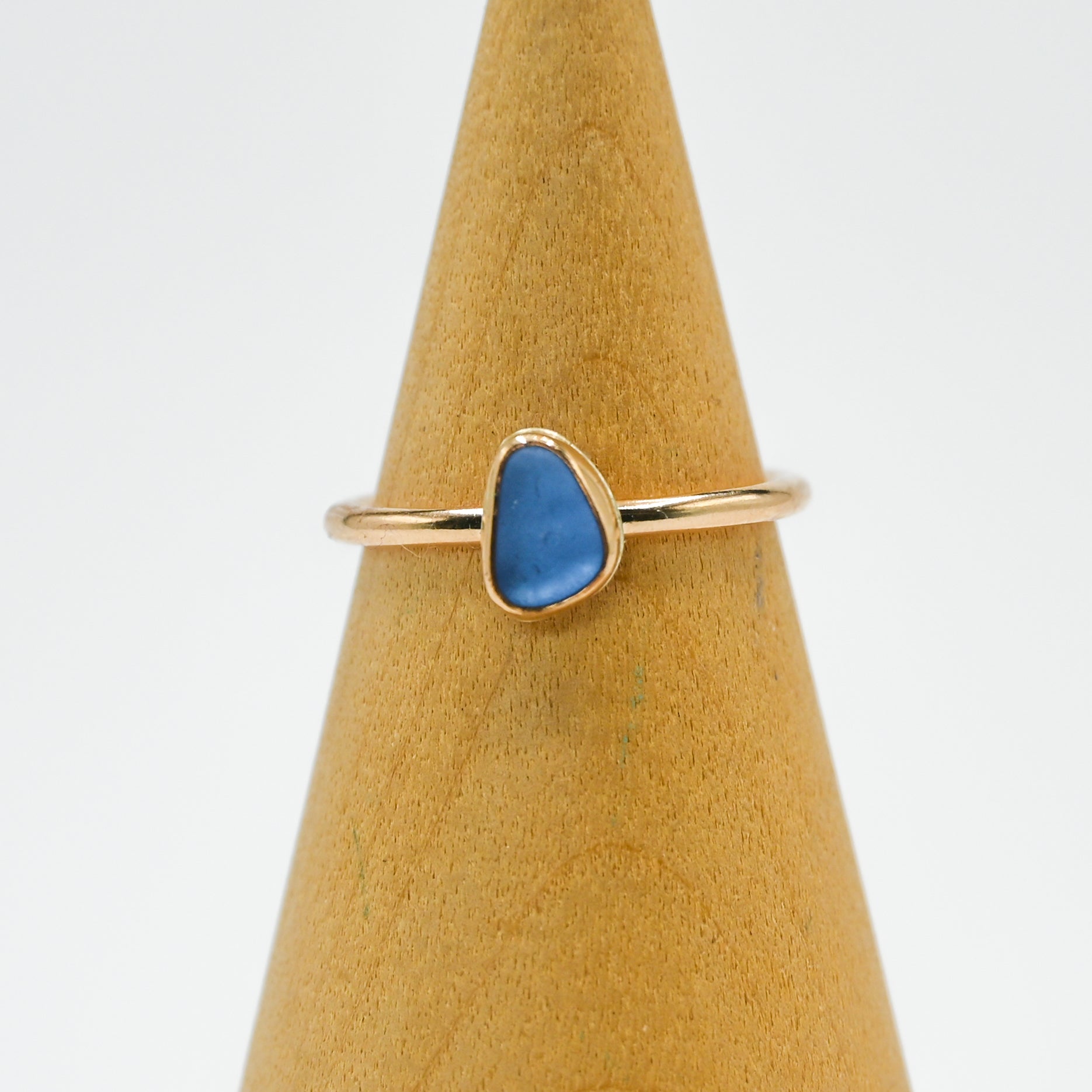 I find all my sea glass in the central coast of California. Sea glass set in 14k yellow gold fill.