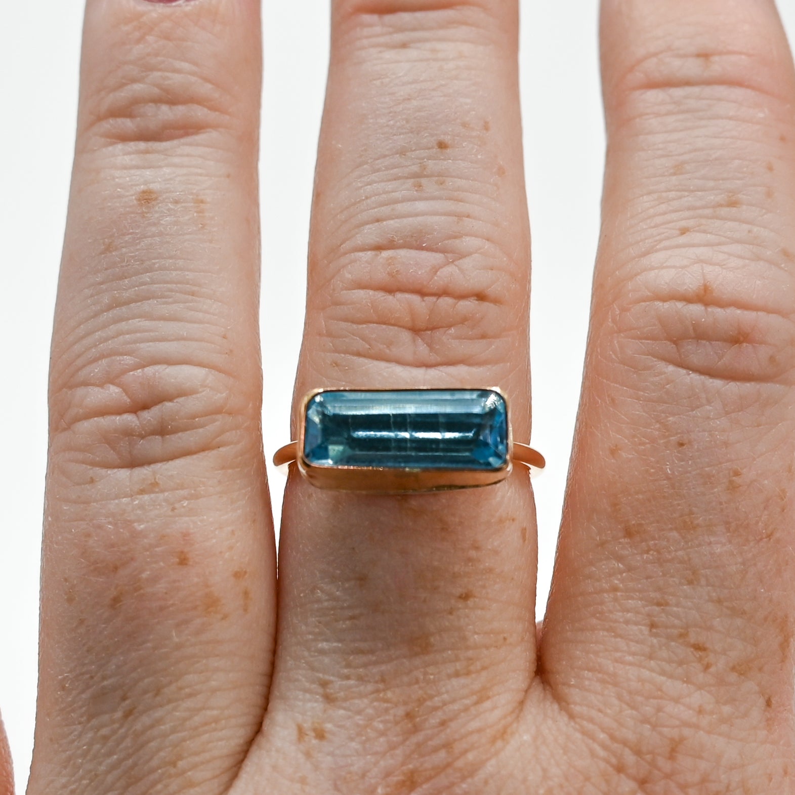 Gold fill horizontal faceted aquamarine size 8