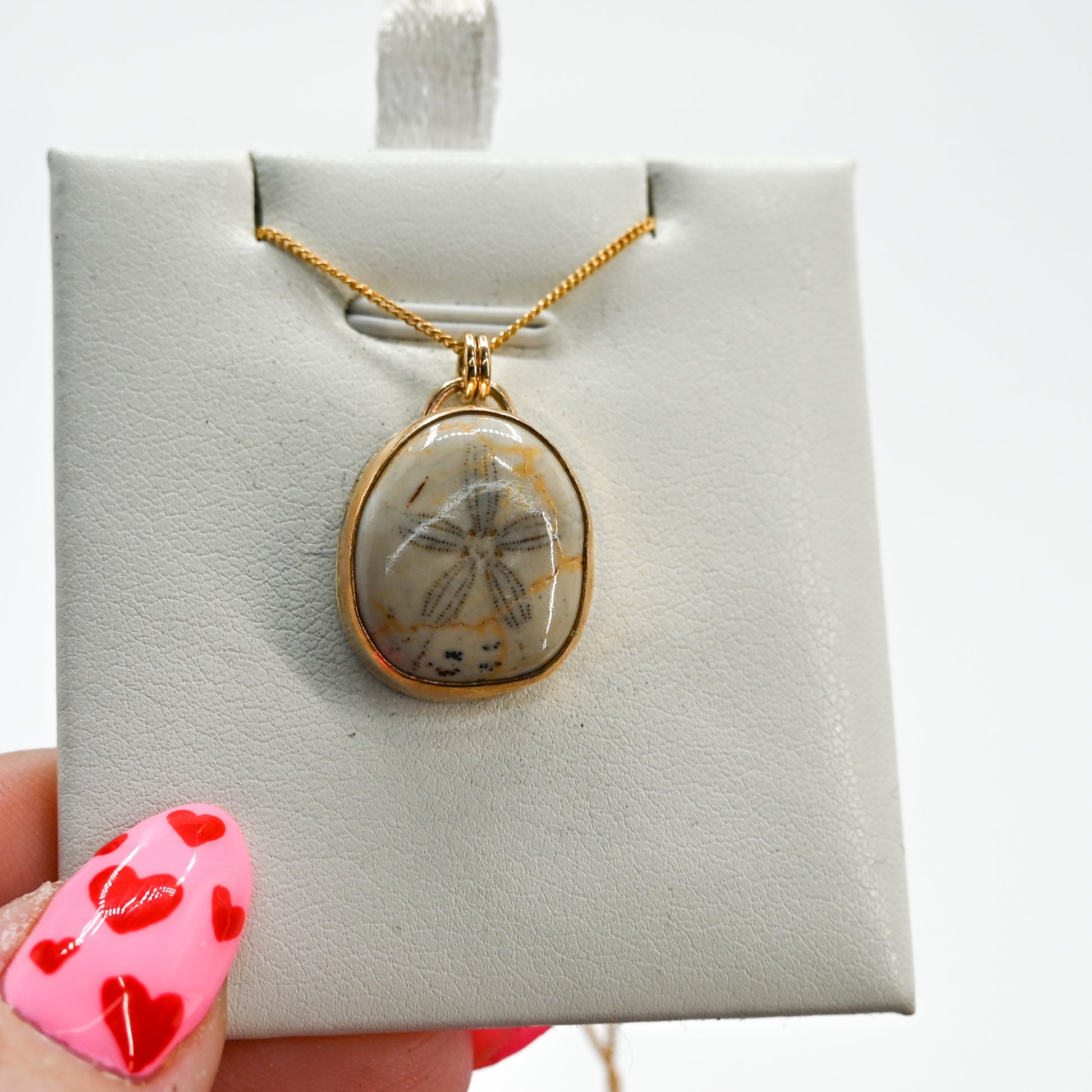 Gold fill large fossilized sand dollar necklace