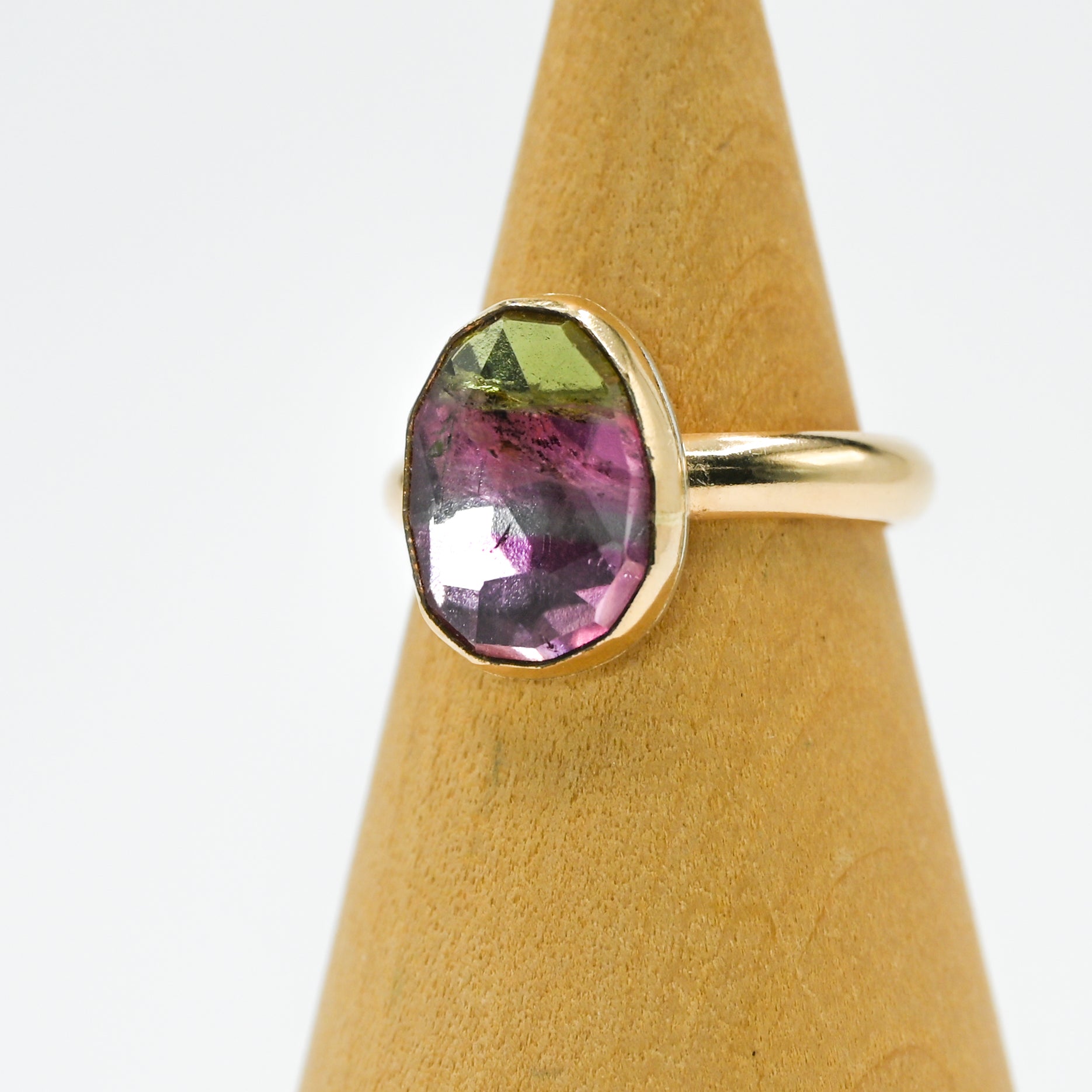 Gold fill large rose cut watermelon tourmaline size 7.5