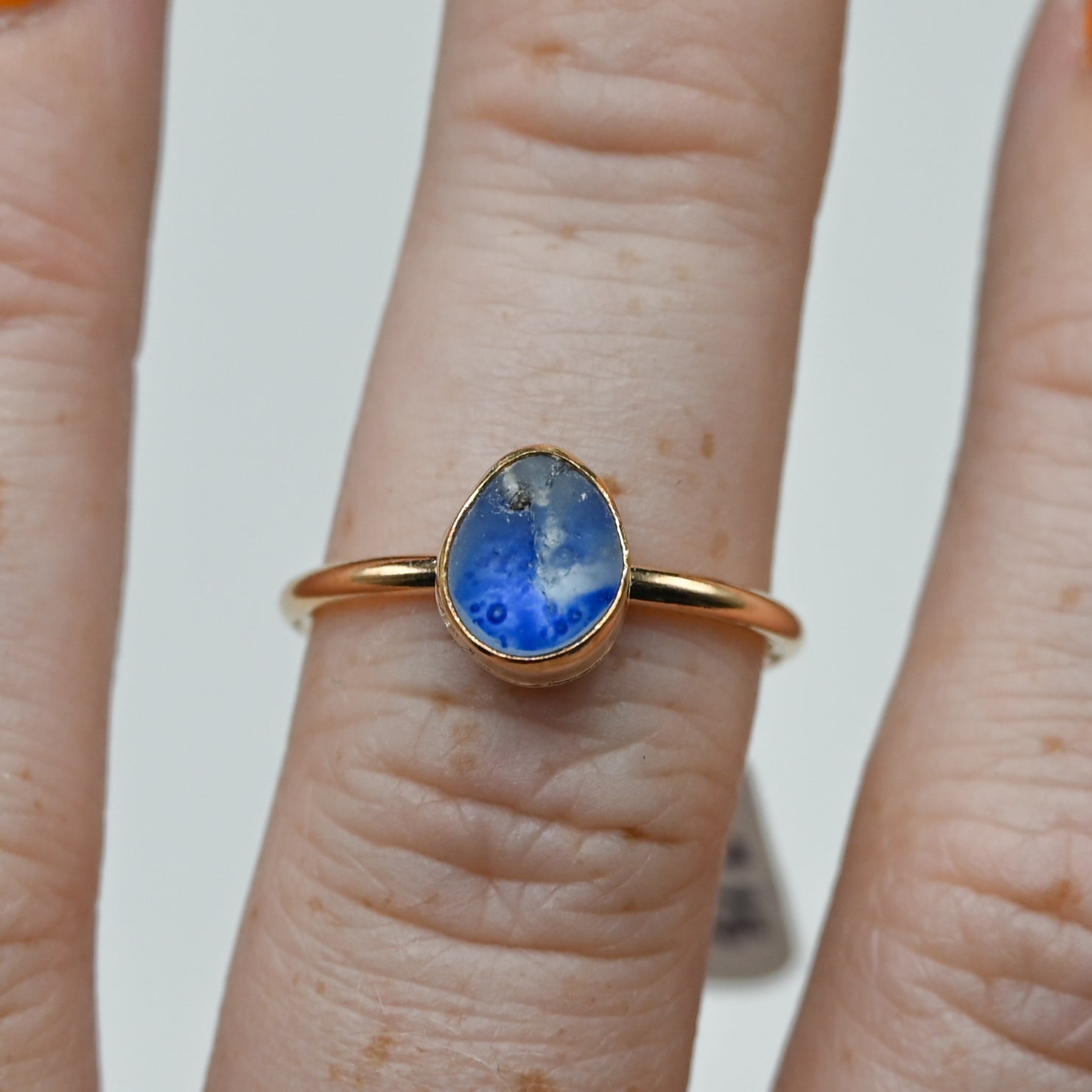 Gold fill multi sea glass blue and white size 7.25