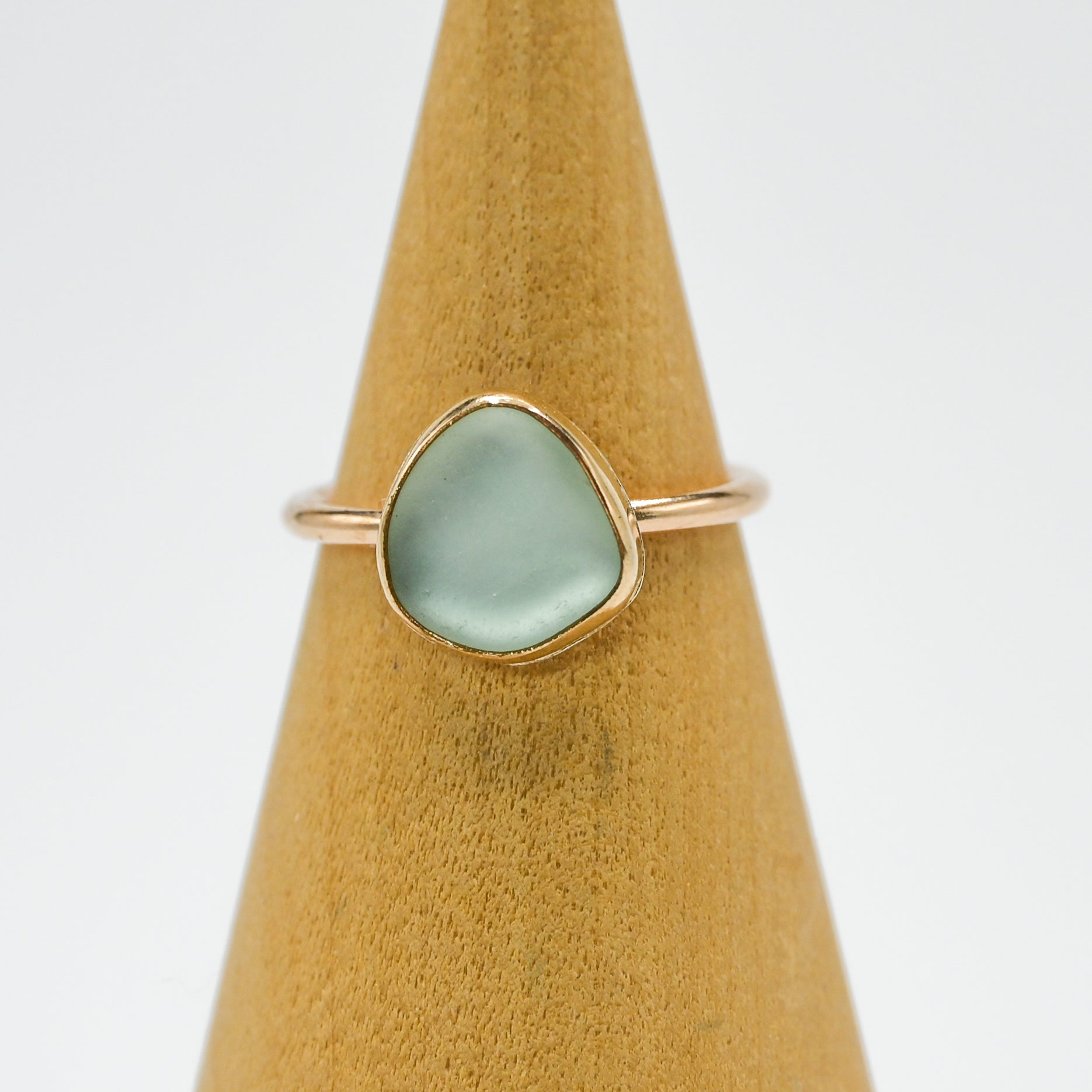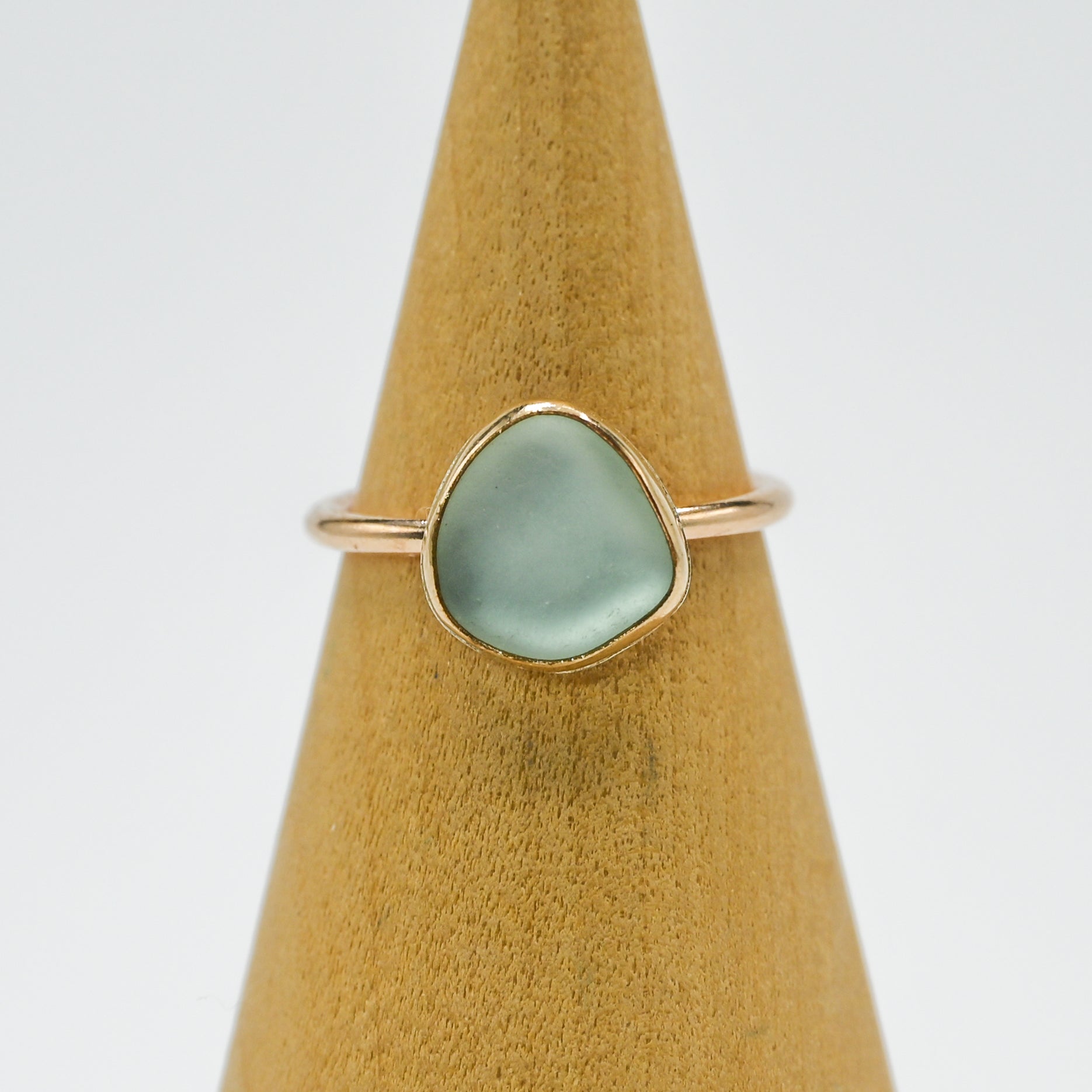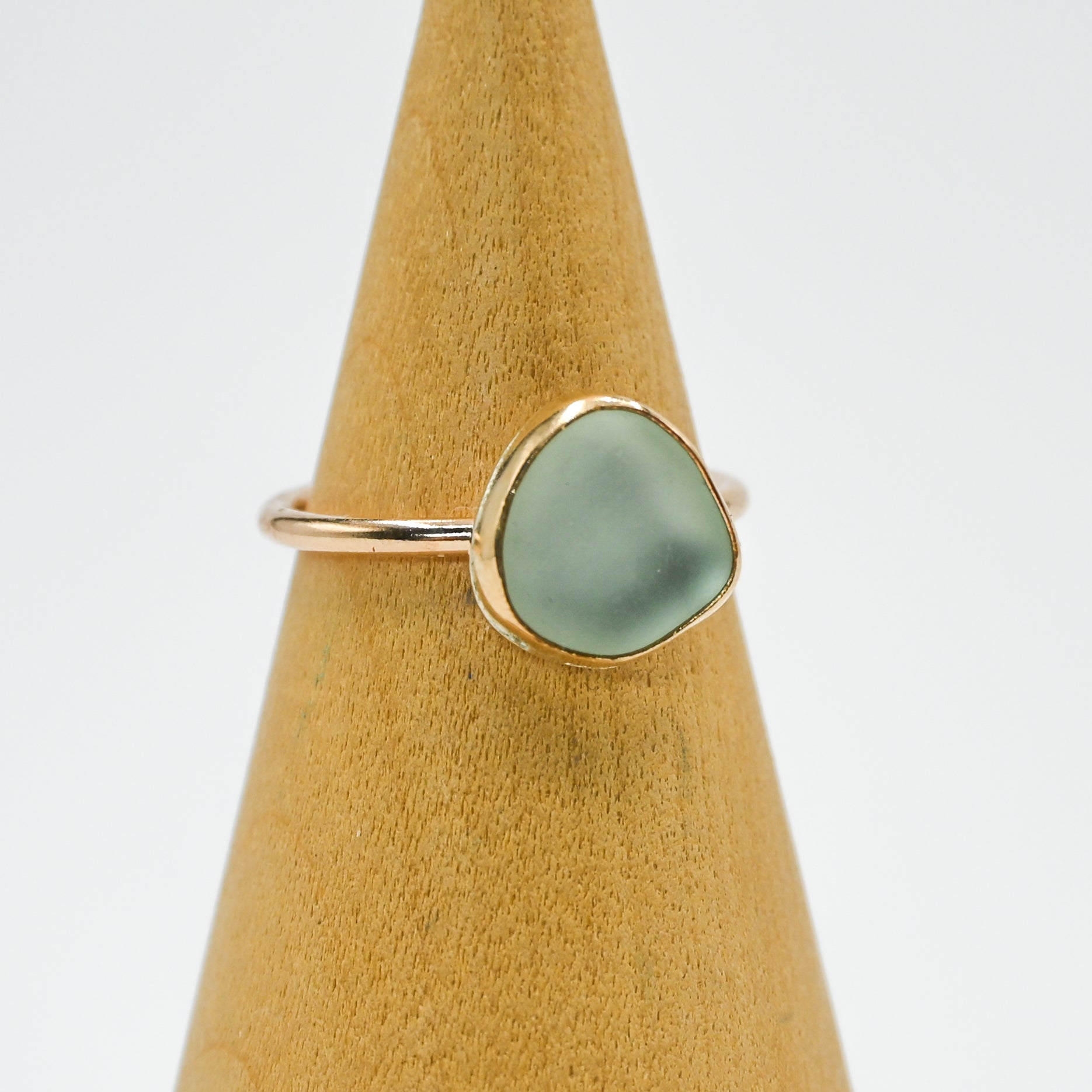 I find all my sea glass in the central coast of California. Sea glass set in 14k yellow gold fill.