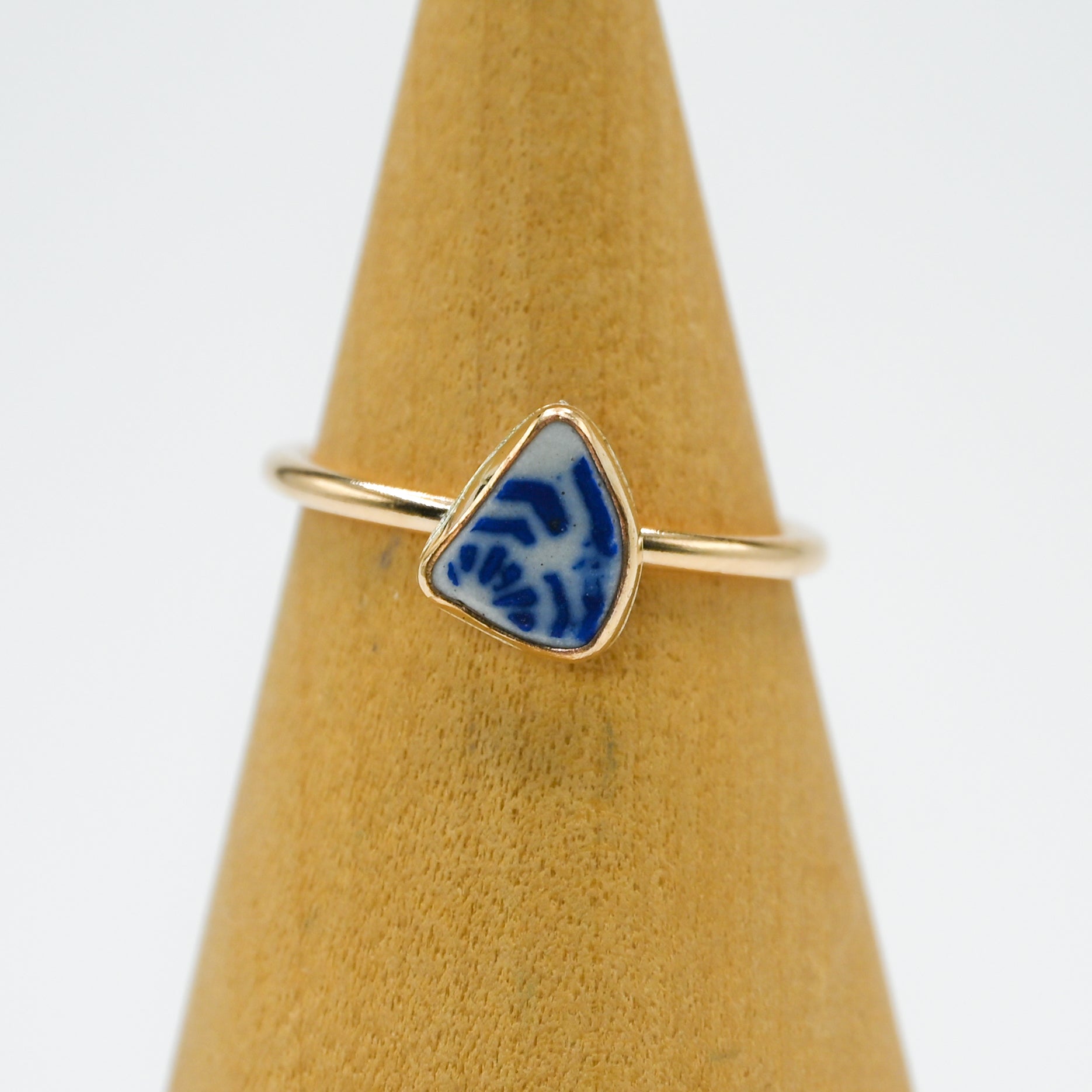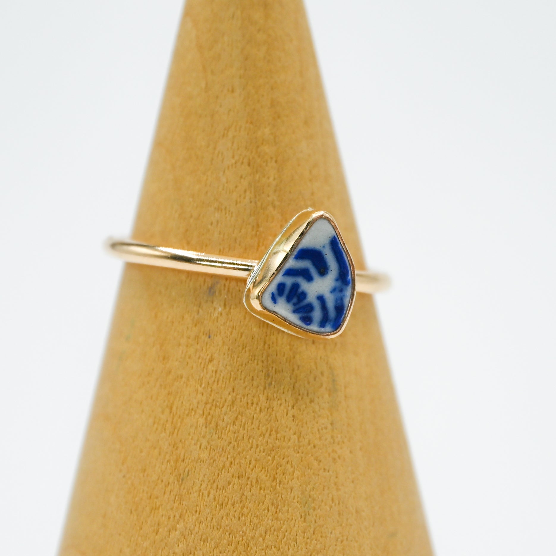I find all my sea glass in the central coast of California. Sea glass set in 14k yellow gold fill.